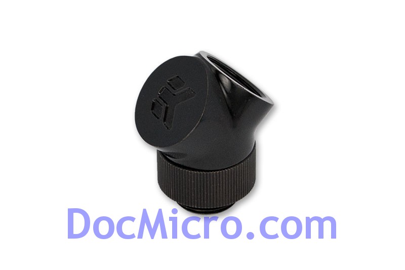 Le connecteur est coudé à 45° et est équipé d'un filetage 1/4" Male et d'un filetage 1/4" Femelle.
