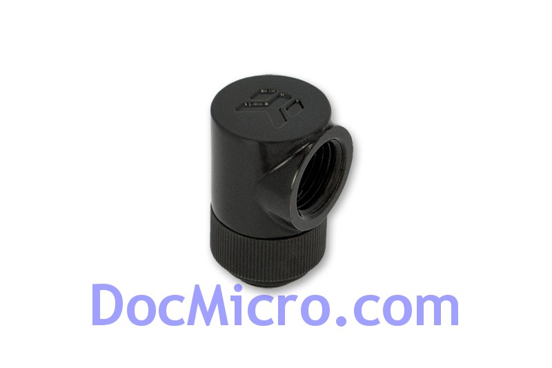 Le connecteur est coudé à 90° et est équipé d'un filetage 1/4" Male et d'un filetage 1/4" Femelle.