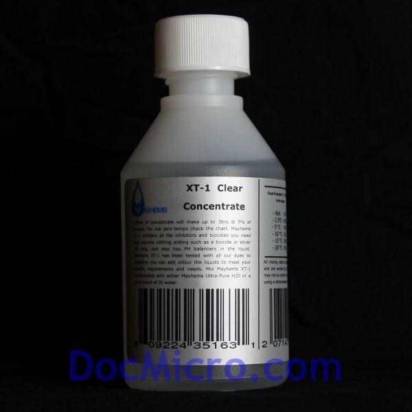 Le Mayhem XT-1 est un liquide de refroidissement à haut rendement, non-toxique, à faible viscosité basée qui contient de l'éthylène glycol.