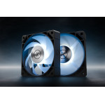 Le ventilateur utilise un roulement hydrodynamique (FDB) d'une durée de vie moyenne avant panne (MTBF) de 70 000 heures, assurant une stabilité à long terme, un faible niveau sonore et des performances constantes. La commande PWM de 550 à 2 200 tr/min permet un réglage précis pour un fonctionnement silencieux ou un refroidissement maximal, selon les besoins du système.