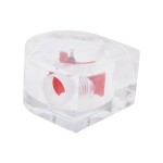 Le débitmètre est entièrement en plexiglass avec une roue rouge.