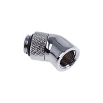 Le connecteur est coudé à 45° et est équipé d'un filetage 1/4" Mâle rotatif et d'un filetage 1/4" Femelle.