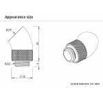 Le connecteur est coudé à 45° et est équipé d'un filetage 1/4" Male et d'un filetage 1/4" Femelle.