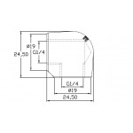 Le connecteur est coudé à 90° et est équipé d'un filetage 1/4" Femelle à chaque extrémité.