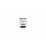 The locking ring prevents solid tube to be pulled out of the fitting by compressing the rubber gasket underneath the ring. The grooves on the outside allow for easier hand tightening. The compression ring has cutouts in EK Quantum signature shape allowing for the colored aesthetic ring to be shown. The colored rings are available in many colors and are screwed onto the fitting before the compression locking ring. The aesthetic rings are sold separately.