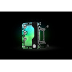 The reservoir is manufactured of premium quality acrylic material, machined to perfection, while the sealing is performed by a quality EPDM o-ring. Alongside the reservoir is a black anodized aluminum cover under which the Addressable D-RGB LED strip is placed. Proper LED implementation is one of the main focus points of EK so that there are as few visible "LED hotspots" as possible.