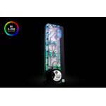 Engineered to be mounted next to the motherboard, the EK-Quantum Reflection Evolv X D5 PWM D-RGB can fit elegantly within the two supported Phanteks cases. The built-in addressable D-RGB LED strip runs down the entire length of the unit while the anodized black aluminum cover hides the unwanted LED hotspots. The installed addressable D-RGB LED strip connects to the motherboard 5V D-RGB (A-RGB) header via an industry-standard connector. It is compatible with all major motherboard vendor software for a coordinated lighting effect.