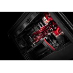 The EK-Quantum Reflection Evolv X D5 PWM D-RGB offers multiple industry-standard G1/4" threaded inlet and outlets. The placement of these inlets and outlets is perfectly aligned to fit inline with the PC components in order to minimize the number of bends the user has to make in order to create the loop. It is able to support 1 CPU, 4 GPUs, and up to an EK-CoolStream XE360 radiator in the top of the case.