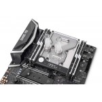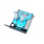 Designed and engineered in cooperation with MSI®, this monoblock uses award-winning EK-Supremacy EVO cooling engine to ensure best possible CPU cooling. This water block directly cools Intel® LGA-2066 socket type CPU, as well as the power regulation (MOSFET) module. Liquid flows directly over all critical areas, providing the enthusiasts with a great solution for high and stable overclocks. Like with every EK monoblock, MSI X299M GAMING PRO CARBON RGB features high flow design and this monoblock can be easily used with the system using a weaker water pump as well. This kind of efficient VRM cooling on an X299 platform additionally brings down the CPU temperatures compared to the traditional CPU water block and stock VRM heatsink cooling solution.