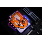 This monoblock uses the latest generation of EK cooling engine used on the Quantum lineup to ensure the best possible CPU cooling while not reducing flow to other components. This water block directly cools the AM4 socket type CPU, as well as the voltage regulation (MOSFET) module. Liquid flows directly over all critical areas, providing the enthusiasts with a great solution for high and stable overclocks. Like with every EK monoblock, the EK-Quantum Momentum Aorus X570 Elite D-RGB  features a high flow design and it can be easily used with the system using a weaker water pump or lower pump speed settings as well. The Momentum monoblock also comes with sophisticated D-RGB (addressable) lightning which connects to an RGB Fusion 2.0 header.