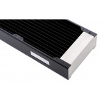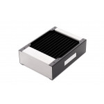 L'intégration dans le circuit de refroidissement se fait avec deux filetages standards G1/4 pouces. Les connexions nécessaires ne sont pas comprises dans la livraison. La faible largeur de seulement 120 mm assure un maximum de flexibilité.