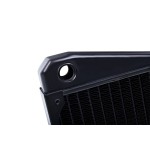 Toutes les pièces principales, non seulement les ailettes et les canaux, mais les chambres sont également fabriqués à partir de cuivre. Cela apporte une amélioration de la performance du radiateurs. Les chambres séparées donnent au liquide de refroidissement une direction claire, ce qui permet des débits élevés qui permettent d'améliorer les performances de l'ensemble du circuit de refroidissement.
