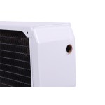 Toutes les pièces principales, non seulement les ailettes et les canaux, mais les chambres sont également fabriqués à partir de cuivre. Cela apporte une amélioration de la performance du radiateurs. Les chambres séparées donnent au liquide de refroidissement une direction claire, ce qui permet des débits élevés qui permettent d'améliorer les performances de l'ensemble du circuit de refroidissement.