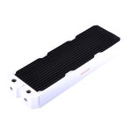 Thick, extruded aluminum end caps with a contrasting silver finish give the radiator a premium look and feel. They cover the internals and join the stamp-pressed side plates, creating a rigid structure that is pleasant to handle. The stainless-steel side plates are coated with a durable semi-matte white paint, while the fins themselves have a special black matte coating with a high thermal conductivity coefficient. The shade of white is carefully picked to match some of the most popular white cases on the PC market.