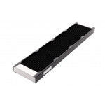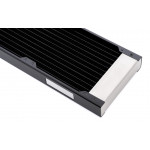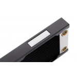 L'intégration dans le circuit de refroidissement se fait avec deux filetages standards G1/4 pouces. Les connexions nécessaires ne sont pas comprises dans la livraison. La faible largeur de seulement 120 mm assure un maximum de flexibilité.
