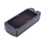 Toutes les pièces principales, non seulement les ailettes et les canaux, mais les chambres sont également fabriqués à partir de cuivre. Cela apporte une amélioration de la performance du radiateurs. Les chambres séparées donnent au liquide de refroidissement une direction claire, ce qui permet des débits élevés qui permettent d'améliorer les performances de l'ensemble du circuit de refroidissement.