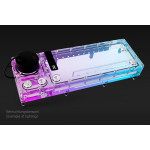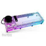 La Plaque de Distribution Apex d'Alphacool est fabriquée en verre acrylique de haute qualité. Cela permet une vue claire du liquide de refroidissement et permet une illumination brillante grâce à l'éclairage aRGB adressable numériquement intégré. L'éclairage peut être contrôlé via un en-tête aRGB numérique sur la carte mère ou, en option, via le contrôleur aRGB Aurora Eiscontrol d'Alphacool (Article EAN : 4250197153607).