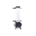 Ce réservoir Eisbecher est le frère aîné de la version DDC. La pompe est montée avec une bague de fixation qui maintient la pompe avec huit vis. Vous pouvez utiliser quatre LED qui sont cachés dans la bague de la pompe pour l'éclairage de la version plexi. L'éclairage de la partie supérieure est facilitée par le module d'éclairage. La colonne et le Bubble down font un excellent travail dans ce modèle. La fixation se fait soit par les supports (inclus) soit par la base.