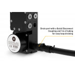 Il est livré avec un orifice de vidange, un raccord à déconnexion rapide et un tube permettant à l'utilisateur de pouvoir vidanger son système directement hors du boîtier sans avoir besoin d'autres outils.