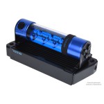 The Alphacool Eisbecher Helix 250 is the optical highlight of the Eisbecher family. The helix inside the reservoir gives off a unique effect reminiscent of a strand of DNA, making it a real eye-catcher. In the middle of the reservoir is a UV cathode tube powered over a 4-pin plug. If UV-reactive water is used, the cathode tube will create a strong glow from the inside of the reservoir, making for a unique effect that really impresses.