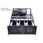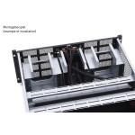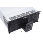 Le rack serveur 4U offre des possibilités de montage pour six lecteurs 5,25" sur les côtés gauche et droit de la face avant.