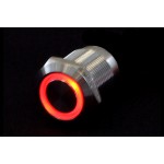 1x Vandalism-proof push-button 19mm stainless steel, red ring lighting