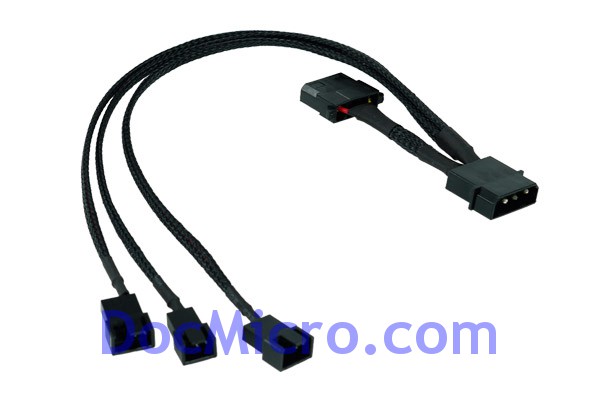Permet de connecter 3 ventilateurs (1x 3 broches et 2x 4 broches PWM) à la même prise d'alimentation Molex 4 broches.