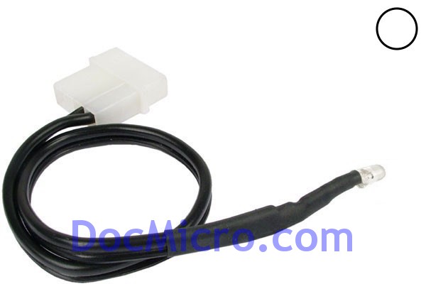 Led Blanche alimentée par molex 4pins à fixer sur un réservoir ou un waterblock equipé d'un trou pour led 5mm afin de leur donner un look tuning du plus bel effet.