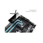 Puis, le cadre de montage correspondant est placé sur le refroidisseur de CPU et, enfin, fixé avec quatre écrous sur les entretoises.