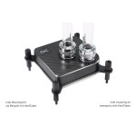 Le système de montage a également été revu. Comparé aux modèles précédents d'Alphacool, il nécessite moins de vis. Tout d'abord, le pré-assemblage de la plaque arrière (Intel) est effectué avec quatre entretoises. Ensuite, la pâte thermique est appliquée sur le CPU. Puis, le cadre de montage correspondant est placé sur le refroidisseur de CPU et, enfin, fixé avec quatre écrous sur les entretoises.