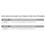 Ce waterblock à couverture complète refroidit directement le cœur de la carte vidéo (GPU), la mémoire graphique (RAM) et les modules régulateurs de tension (VRM).