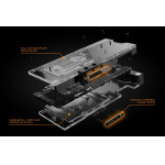 Le waterblock Vector refroidit activement le GPU, la VRAM (à l'avant), les étages d'alimentation et les selfs dans le VRM (module de régulation de tension), les points chauds du PCB qui se trouvent à l'arrière du noyau du GPU et le VRM (régulation de tension module).