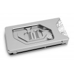 Il fournit également un refroidissement passif supplémentaire pour le noyau du GPU et l'arrière de la section VRM de la carte de circuit imprimé. En raison de la petite taille de la carte et du waterblock lui-même, la plaque arrière nervurée offre une surface accrue pour une puissance de refroidissement passive supplémentaire. Il est fait d'aluminium anodisé dans une finition argentée.