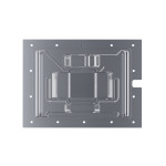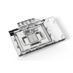 La structure des ailettes de cette génération de refroidisseur Eisblock a été développée en collaboration avec les partenaires de la carte Nvidia. L'épaisseur des ailettes est de 0,4 mm, la distance entre les ailettes de refroidissement est de 0,4 mm. Cela assure un très bon débit d'eau tout en augmentant la surface de refroidissement. La plaque de jet a une incrustation révisée qui répartit mieux la pression de l'eau sur les ailettes, optimisant ainsi l'absorption de chaleur. L'afflux d'eau ajusté donne à l'eau un meilleur angle d'afflux.