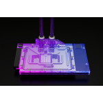 Le refroidisseur d'eau Alphacool Eisblock Aurora pour les cartes graphiques Geforce RTX 4XXX. Afin de dissiper au mieux l'énorme chaleur de cette génération de cartes graphiques, de nombreuses optimisations ont été apportées au refroidisseur d'eau par rapport au modèle précédent. La structure des ailettes a été adaptée et permet un très bon écoulement de l'eau tout en augmentant la surface de refroidissement. La plaque de jet modifiée avec moteur d'admission amélioré assure une répartition optimale de l'eau sur les ailettes de refroidissement.