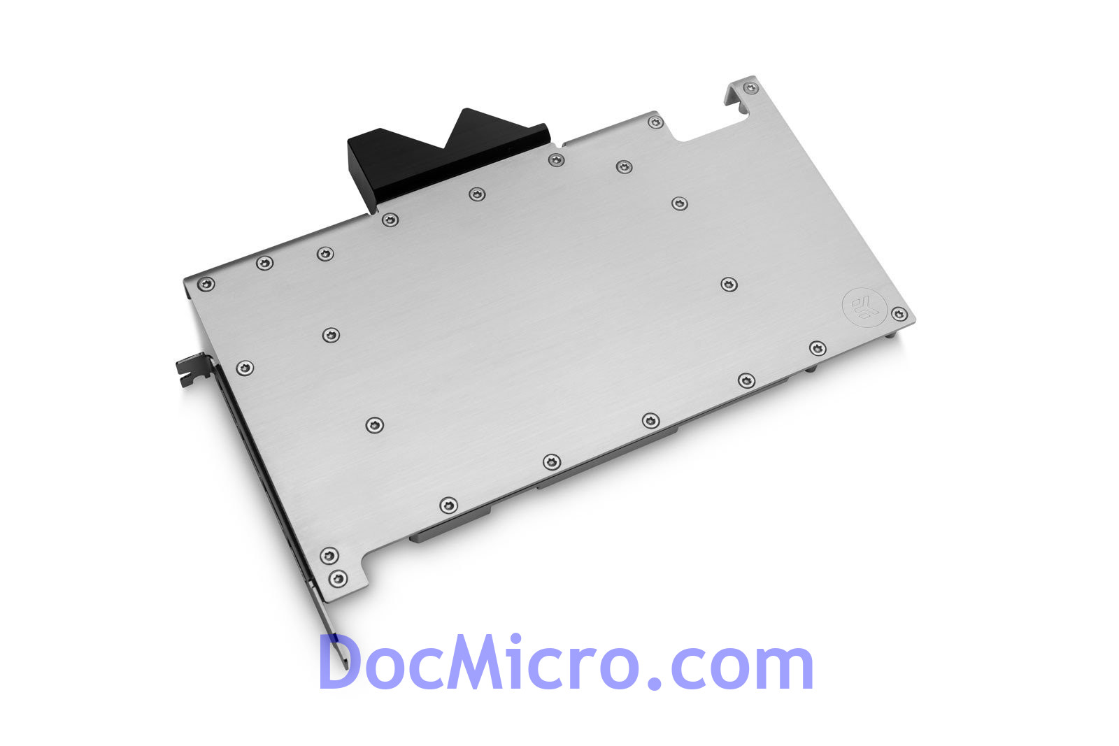 The base of the block is CNC machined out of nickel-plated electrolytic copper, while the top is laser-cut out of industry-grade stainless steel. High-quality EPDM O-Rings ensure the sealing. The brass standoffs are pre-installed and allow for a safe and easy installation procedure. For added stability and protection for the graphics card, the I/O plate is designed to be a part of the water block top itself, which means that the block replaces the stock I/O shield and adds more sturdiness to the whole assembly.