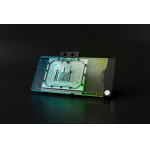 The cold plate is CNC-machined out of high-quality, pure electrolytic copper which is then nickel-plated, while its top is CNC-machined out of glass-like cast acrylic. The black anodized backplate has a new L-shaped profile that touches the base of the water block and encloses the entire GPU while increasing the cooling surface leading to even better performance.