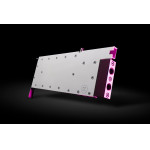 By spanning the entire PCB, the water block directly cools the GPU, VRAM, and VRM (voltage regulation module) as cooling liquid is channeled directly over these critical areas.