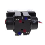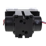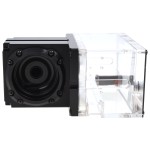 Contrairement aux solutions connues où le liquide de refroidissement est passé autour des coins et des bords, les micro-bulles dans ce type de système ne sont pas éliminées. Ici, sur les deux entrées de la pompe marquées par "in" & "out", il ya un filtre, qui élimine le problème de mini bulles d'air dans le réservoir.