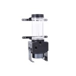 Ce réservoir Eisbecher est le frère aîné de la version DDC. La pompe est montée avec une bague de fixation qui maintient la pompe avec huit vis. Vous pouvez utiliser quatre LED qui sont cachés dans la bague de la pompe pour l'éclairage de la version plexi. L'éclairage de la partie supérieure est facilitée par le module d'éclairage. La colonne et le Bubble down font un excellent travail dans ce modèle. La fixation se fait soit par les supports (inclus) soit par la base.