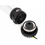 Au milieu du tube, un poteau d'éclairage en acrylique permet de connecter une LED 5mm. La LED est facilement remplaçable afin de l'assortir à la couleur de votre choix.